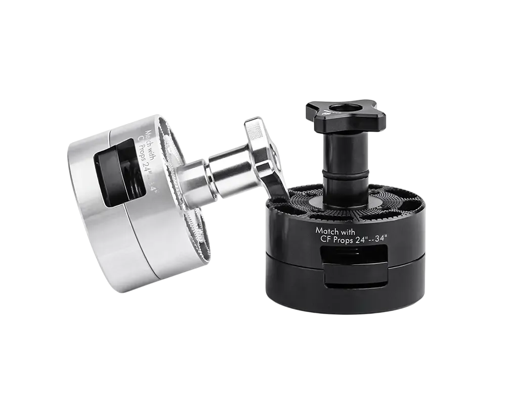 Профессиональный Quick-Attach/Detach-адаптер, который позволяет ставить и снимать крупные пропеллеры за секунды — без гаек и инструментов. Двойная блокировка и точная центровка уменьшают люфт и вибрации, а жёсткий корпус из анодированного алюминия 7075 выдерживает высокие нагрузки тяжёлых платформ и VTOL.
