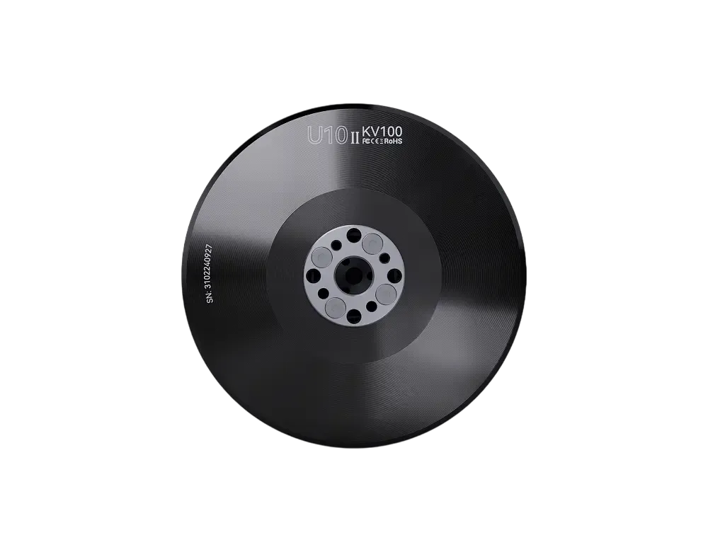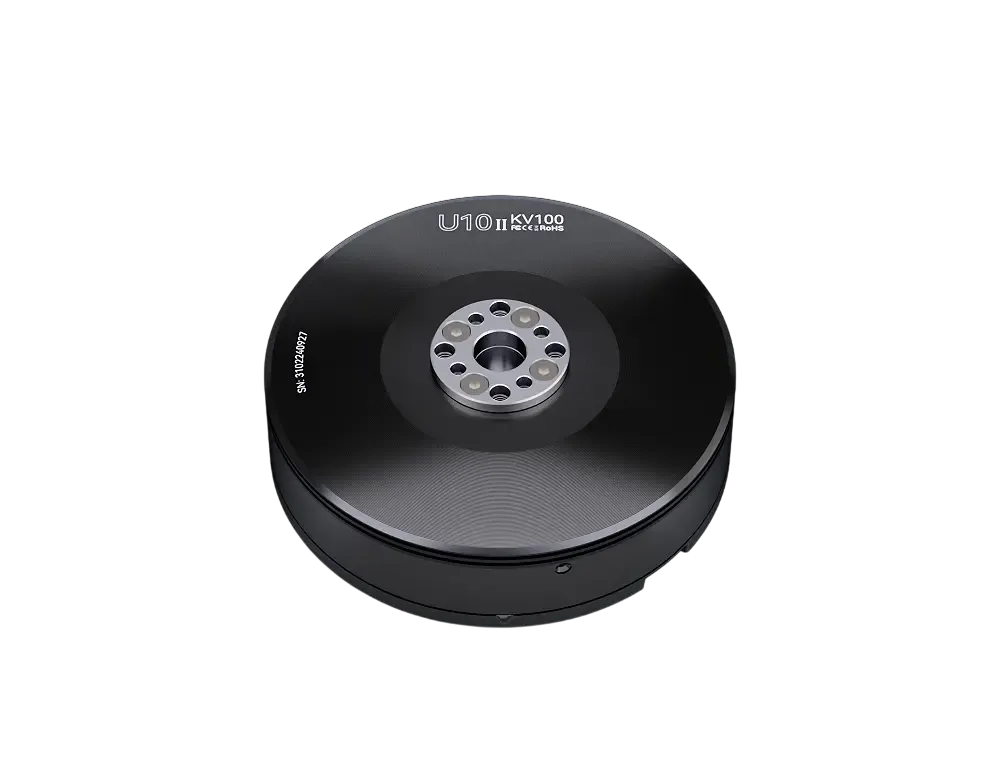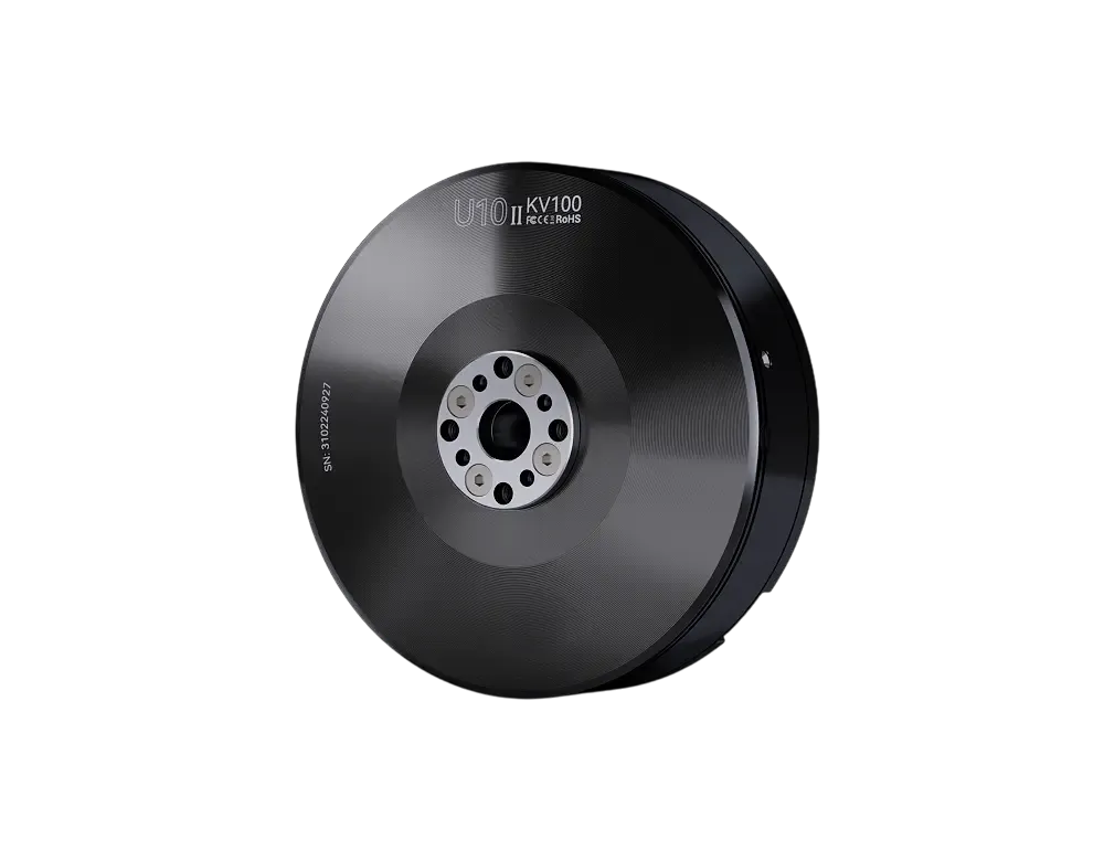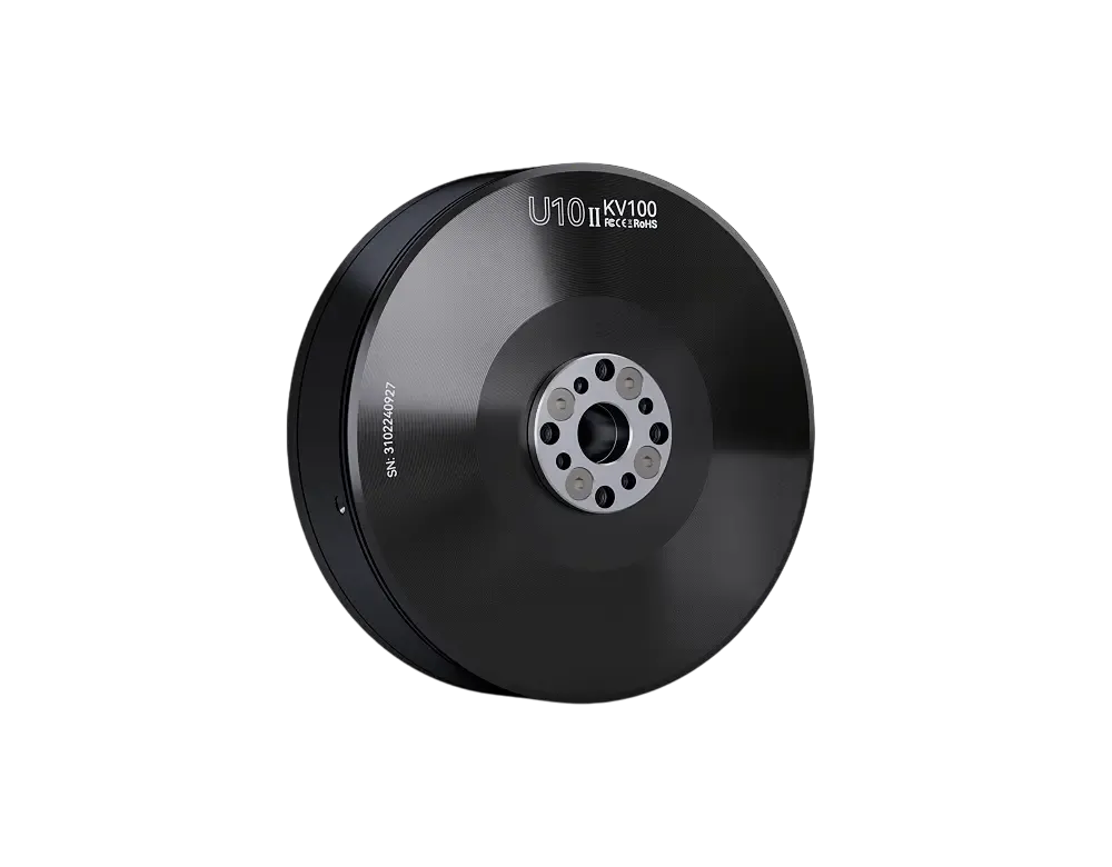 T-MOTOR U10Ⅱ KV100 — профессиональный бесколлекторный мотор для тяжёлых мультикоптеров, оптимизированный для стабильной тяги на низких оборотах и высокой эффективности при больших пропеллерах. Толстые «серебряные» выводы и обновлённый магнитопровод снижают потери в меди и температуру, упрощают управление и повышают надёжность. Защитные обработки (соляной туман 48 ч) и пыле-/влагозащита промышленного уровня позволяют работать в сложной погоде. Рекомендованная силовая схема — 12S LiPo с пропеллерами 28–30″.