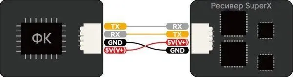 - Betaflight и ExpressLRS используют разную распиновку JST SH. При подключении проверяйте порядок проводов (5V, GND, RX, TX)