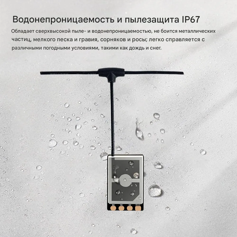 Ультранадежный и водонепроницаемый приемник серии «Cement», разработанный для работы по протоколу ExpressLRS (ELRS) в диапазоне 2.4 ГГц. Благодаря полной заливке компаундом, приемник имеет степень защиты IP67, что гарантирует его безупречную работу под дождем, снегом, в пыли и грязи. Встроенный усилитель мощности (PA) на 100 мВт обеспечивает стабильную телеметрию, высокую чувствительность и увеличенную дальность связи, а защита от переполюсовки питания предотвращает повреждение при случайной ошибке монтажа. Это идеальное решение для создания всепогодных FPV-дронов, где требуется максимальная надежность и живучесть оборудования.