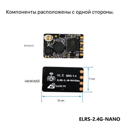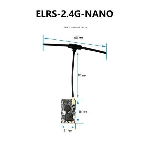 Сверхлегкий и компактный приемник для протокола ExpressLRS (ELRS) диапазона 2.4 ГГц. Благодаря размерам всего 11×18 мм и весу 0.4 г, этот приемник идеально подходит для установки в самые маленькие дроны (whoop, toothpick) и сборки, где критичен каждый грамм. Приемник построен на базе чипов SX1281 и ESP8285, имеет выходную мощность телеметрии 100 мВт и поддерживает обновление прошивки по Wi-Fi. Одностороннее расположение компонентов облегчает интеграцию в ограниченном пространстве, обеспечивая надежную и дальнобойную связь с минимальной задержкой.