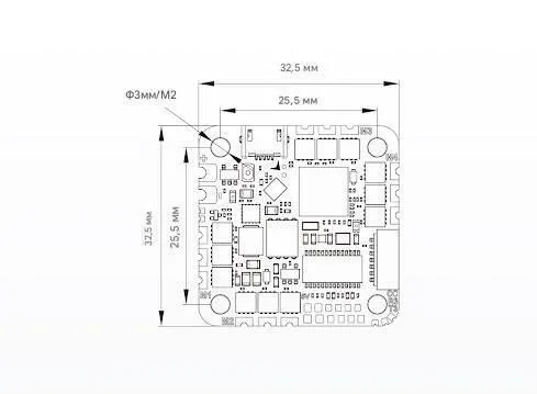 - Тип устройства: Интегральная плата AIO (All-In-One), объединяющая FC и 4-в-1 ESC