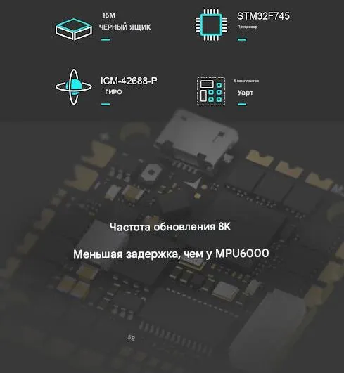 - Гироскоп (Gyro): ICM-42688-P (SPI, частота опроса до 8 кГц)