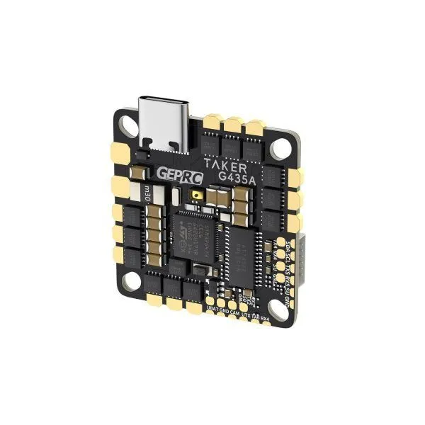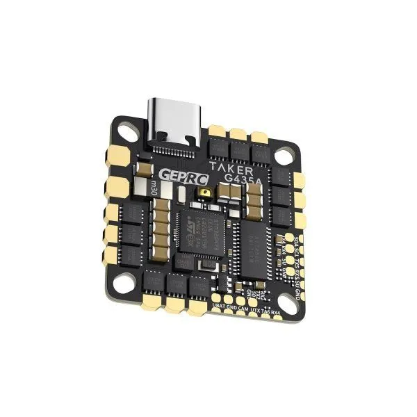 Полетный контроллер GEP-TAKER G4 35A AIO представляет собой компактное all-in-one решение, разработанное для дронов, работающих с батареями 2–4S. Контроллер объединяет полетный контроллер на базе STM32G473CEU6 (170 МГц) и 4-в-1 ESC на 35A (пиковый 45A). Гироскоп ICM42688-P обеспечивает высокую стабильность и точность управления. Усовершенствованный Type-C USB, оптимизированные контактные площадки для пайки и универсальное крепление (25.5–26.5 мм) упрощают установку в различные рамы. Вес составляет всего 7.7 г, что делает контроллер идеальным выбором для легких и производительных сборок.