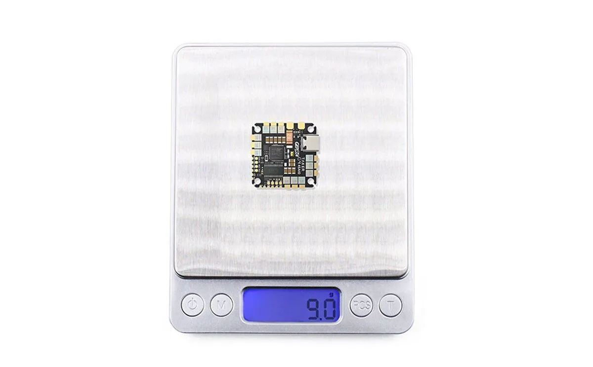 - Мощный ESC на 45A позволяет использовать контроллер с 5-дюймовыми фристайл и гоночными дронами