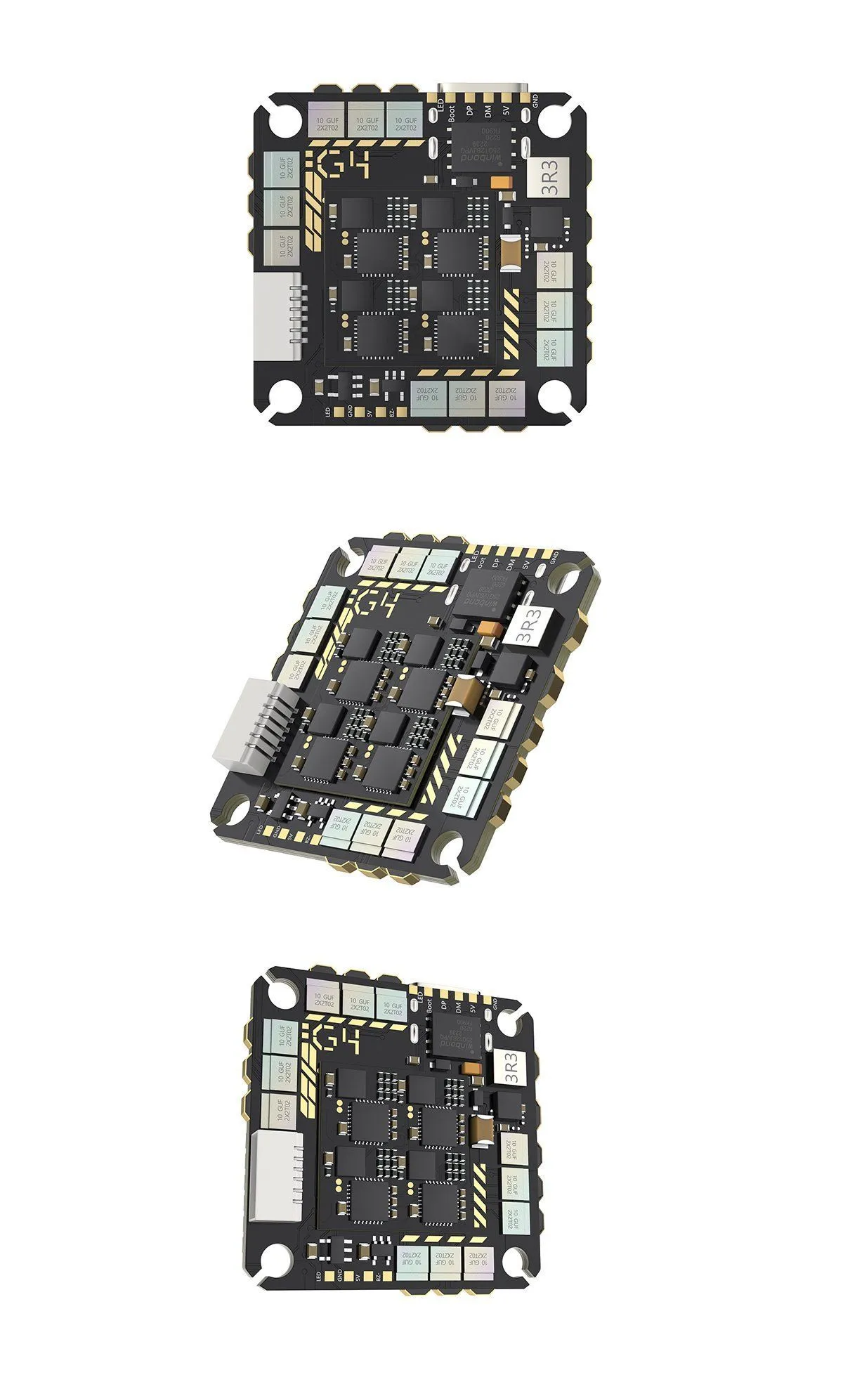 - Высокий ток и мощный BEC делают контроллер подходящим для дронов с мощными моторами и энергоемкой периферией