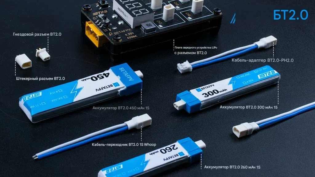 - Совместимые дроны: Beta65X HD, Beta65X FPV и другие 2S Whoop-дроны с последовательным подключением батарей