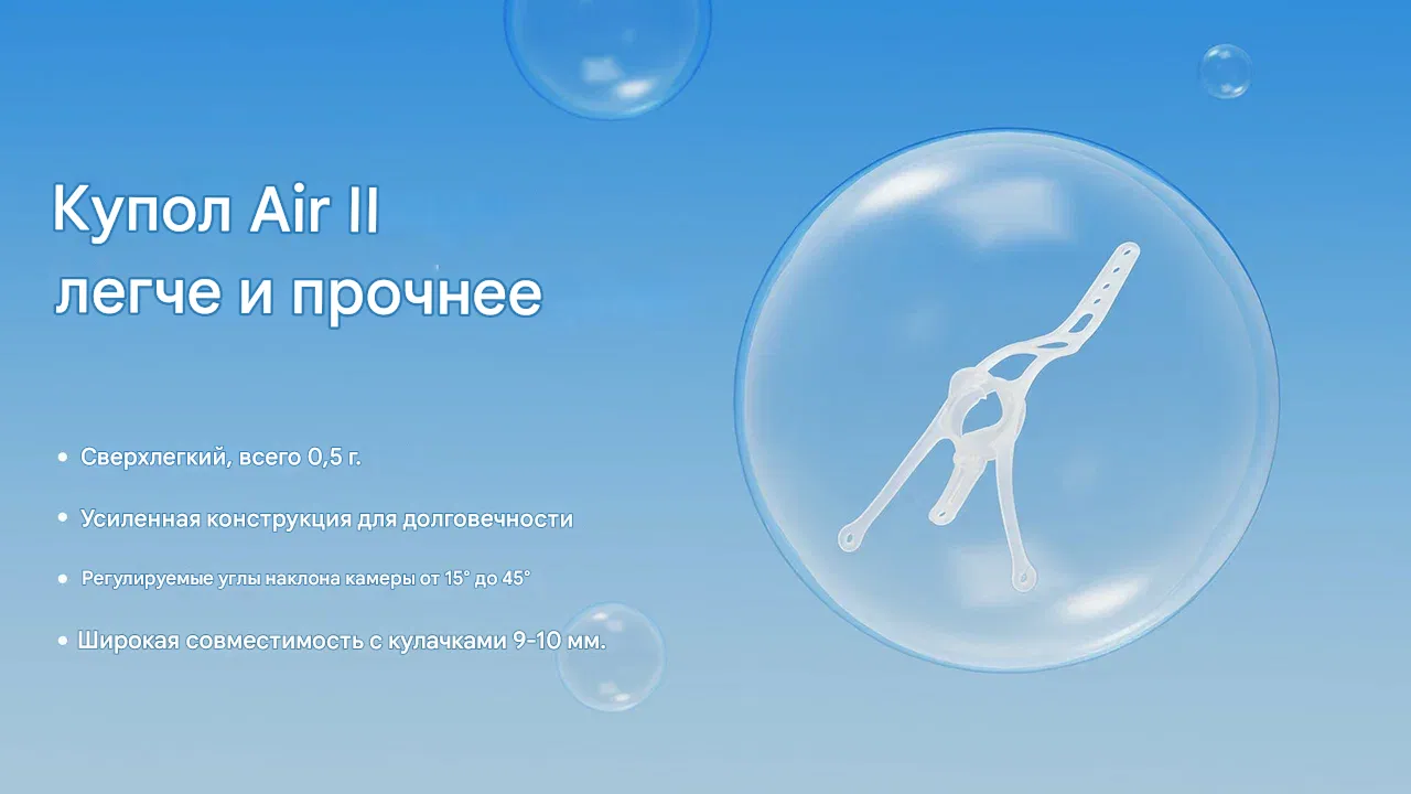 Air II Canopy — это защитный козырек нового поколения для микро-дронов формата Whoop, обеспечивающий ультралёгкую конструкцию (0.5 г) и повышенную ударопрочность. Козырек выполнен из модернизированного материала PP, оснащён системой точной регулировки угла наклона камеры от 15° до 45° с шагом 10° и обладает расширенной совместимостью с большинством микро- и нано-камер диаметром объектива 9–10 мм. Конструктивные усиления, включая усиленную переднюю скобу и вентиляционное отверстие в верхней части, повышают устойчивость к ударам и рассеивают энергию столкновения, защищая камеру и полётный контроллер.