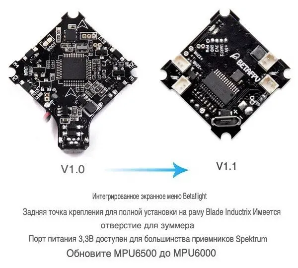 - Назначение: Управление микро-дронами класса Whoop с коллекторными моторами и возможностью установки любого внешнего приёмника