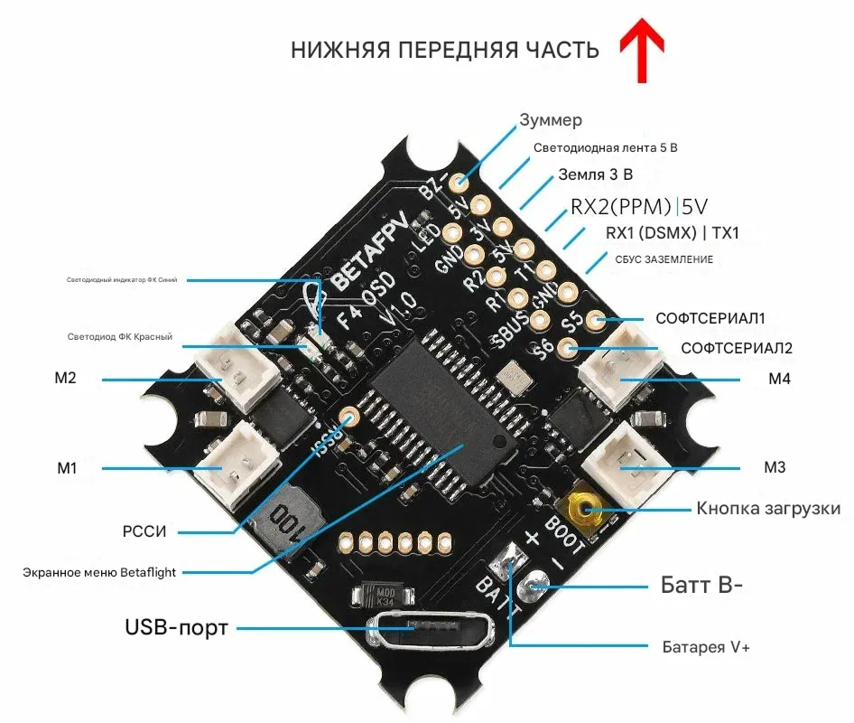 - Модель: BETAFPV F4 Brushed Flight Controller (No Rx + OSD)