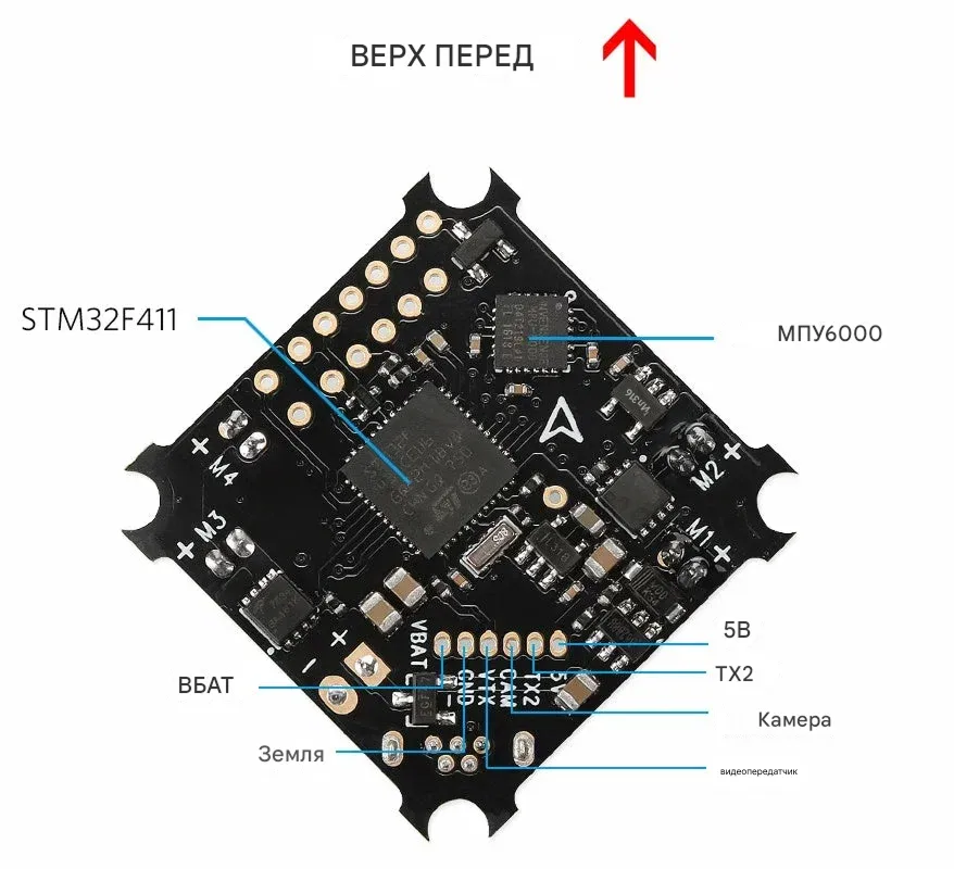 - Назначение: Управление микро-дронами класса Whoop с коллекторными моторами с возможностью установки любого внешнего приёмника