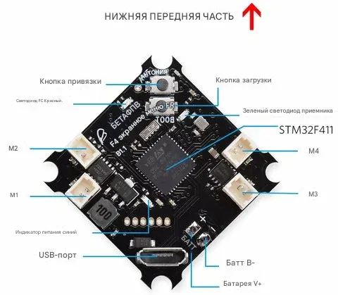 Актуальная версия полетного контроллера F4 Brushed (Frsky Rx + OSD) с обновленной прошивкой Betaflight 3.4.1, обеспечивающей стабильную работу SPI-приемника Frsky D16. В последней версии платы положение контактной площадки BOOT изменено и находится рядом с кнопкой BIND. Контроллер обеспечивает высокую производительность и полную защиту от переполюсовки питания.