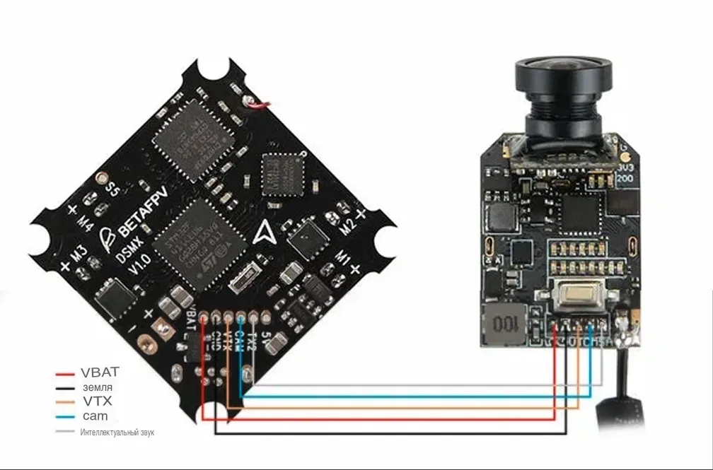 - Встроенный BetaFlight OSD: Отображение телеметрии и меню настроек поверх видео.
