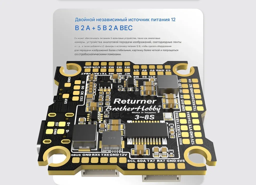 BrotherHobby H743 Flight Controller — это высокопроизводительный контроллер нового поколения, разработанный для профессиональных FPV-дронов, съёмочных платформ и исследовательских аппаратов.