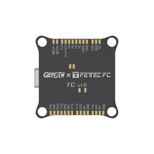 Полетный контроллер GEPRC Fettec G4 Alpha представляет собой высокопроизводительное решение, разработанное совместно с Fettec — известным брендом в мире FPV-гонок. Контроллер оснащен процессором STM32G473CEU6, гироскопом IIM 42602 и фирменной прошивкой FETTEC ALPHA, оптимизированной для максимальной производительности в гоночных дисциплинах. Отличительной особенностью является собственный FETTEC OSD, обеспечивающий высокую скорость отображения информации. Контроллер имеет два независимых BEC (5V@2A и 9V@2A с пиковым током до 2.5A) и USB Type-C. Вес составляет всего 6.6 г.