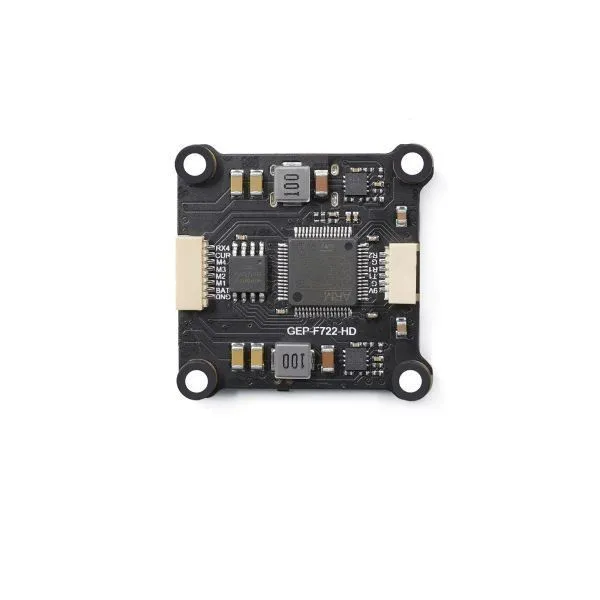 Полетный контроллер GEP-F722 HD представляет собой высокопроизводительное решение для FPV-дронов, специально разработанное для интеграции с цифровой видеосистемой DJI. Контроллер оснащен процессором STM32F722RET6, гироскопом MPU6000 (SPI), встроенным барометром BMP280 и Blackbox на 16 Мб. Отличительной особенностью является встроенный LC-фильтр для чистого питания видеопередатчика и два независимых BEC (5V и 9V). Прямое подключение DJI Air Unit через разъем без пайки упрощает сборку. Контроллер имеет 4 UART порта и USB Type-C.