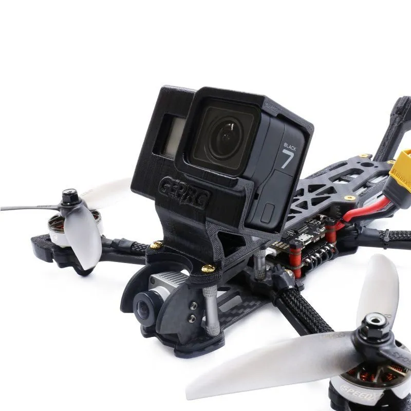 TPU-крепление GEP-Mark4 HD5 для GoPro 7 представляет собой специализированное посадочное место для экшн-камеры, изготовленное методом 3D-печати из высококачественного термопластичного полиуретана (TPU). Данная деталь разработана для точной установки на раму гоночного дрона GEPRC Mark4 HD5. Крепление обеспечивает надежную фиксацию камеры GoPro Hero 7 с эффективным демпфированием вибраций, что критически важно для получения плавного видео при интенсивных полетах в стиле фристайл и гонках.