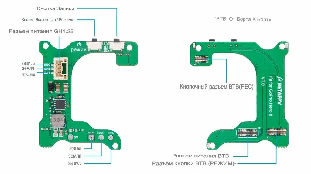 - Модель: BEC Board for Naked Camera (совместимость: GoPro HERO8)