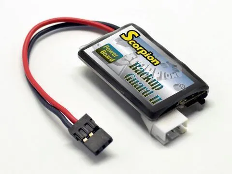 В 2012 году компания Scorpion выпустила первую версию устройства Backup Guard, предназначенного для спасения авиамоделей при потере питания от ESC/BEC.
