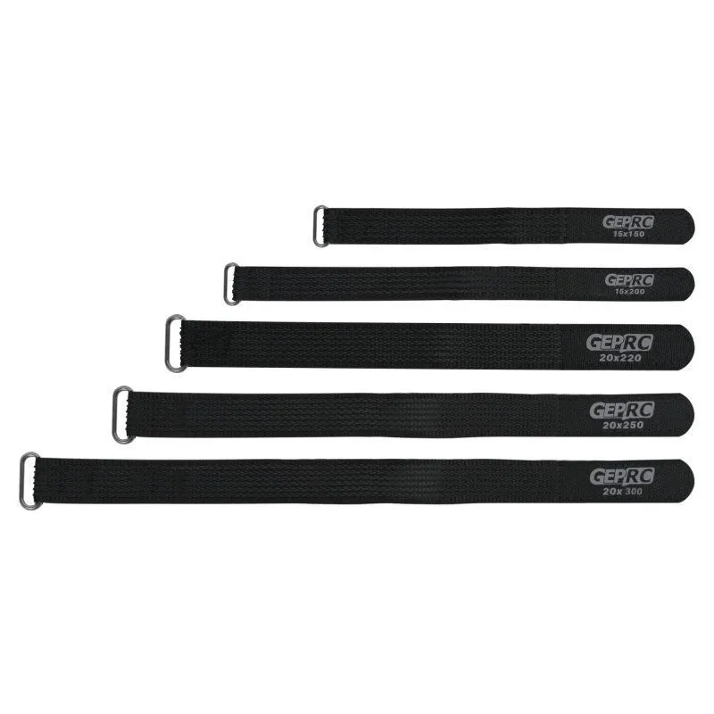 Аккумуляторные стяжки GEPRC представляют собой комплект из пяти липучек с застежкой, предназначенных для надежной фиксации аккумулятора на раме FPV-дрона. Изделия обладают хорошим антискользящим эффектом, высокой износостойкостью и прочностью на разрыв, что предотвращает смещение или выпадение батареи даже при агрессивных маневрах. Стяжки доступны в пяти типоразмерах, позволяющих подобрать оптимальную длину для различных классов дронов и типов аккумуляторов.