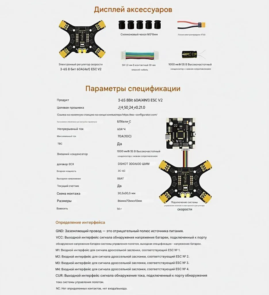 BrotherHobby 3–6S 8Bit 60A (4-in-1) ESC V2 — это улучшенная версия 8-битного регулятора, разработанная для FPV-дронов, требующих стабильности, точного отклика и защиты от перегрузок.