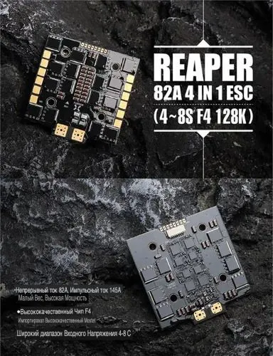 - Прошивка: BLHeli32 (FOXEER_Reaper_F4_80A_128_Multi_32_9)