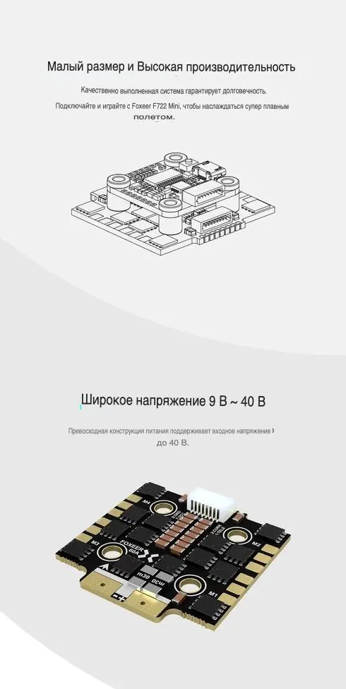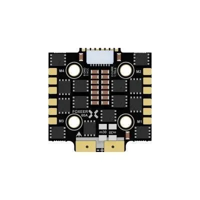 Компактный 4-в-1 регулятор оборотов формата Mini (20x20 мм) для гоночных и фристайл FPV-дронов, а также специализированных БПЛА. Модель построена на базе чипа F4 с оптимизированной силовой схемой, обеспечивающей непрерывный ток 60А и пиковый 100А на мотор при поддержке широкого диапазона входного напряжения 9-40В (3-8S). Специальная конструкция силовой части минимизирует нагрев и предотвращает десинхронизацию, идеально сочетаясь с полетными контроллерами Foxeer формата Mini.