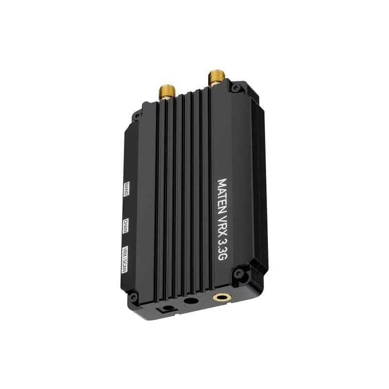 Приемник видеосигнала GEPRC MATEN 3.3 ГГц представляет собой специализированный видеоприемник (VRX) для работы в диапазоне 3.3 ГГц, предназначенный для использования с наземными станциями и FPV-системами. Устройство поддерживает 40 каналов в диапазоне 3083–3480 МГц, оснащено двумя режимами работы (VRX Mode и SCAN Mode), а также встроенным звуковым индикатором уровня сигнала. Приемник питается от 3–8S LiPo (DC 12–36 В), имеет разъемы SMA для антенны, 3.5 мм коаксиальный видеовыход и крепление 1/4″ для установки на штатив. Вес составляет 69 г.